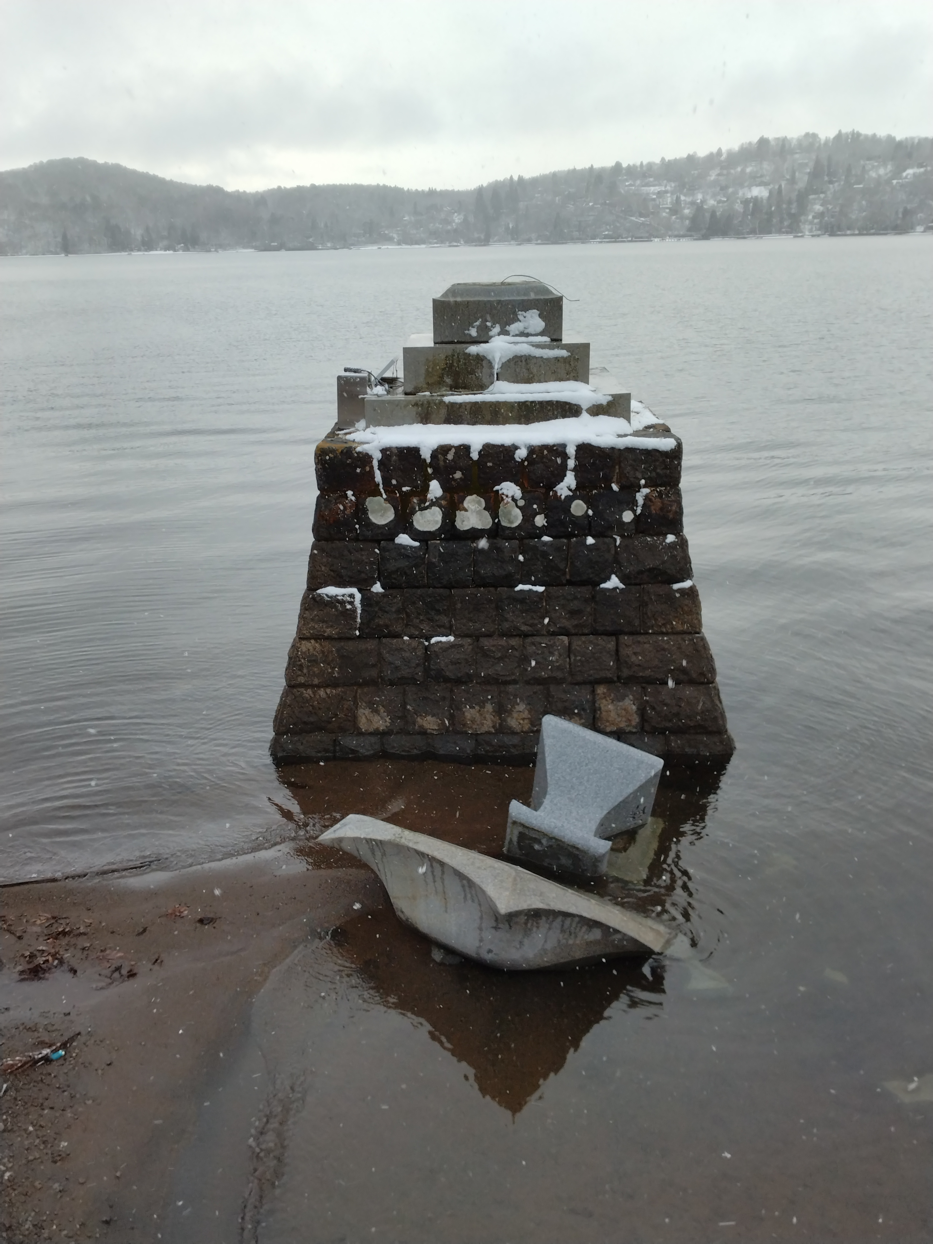 お知らせ 能登半島地震の被害状況 2024.1.25 当神社も湖中灯篭の右側が倒壊し、左側も上部の宝珠が落下してしまいました。2014年11月22日の神代断層地震の際も、同じく右側の灯篭が倒壊してしまいましたが、その時は野尻湖の水位があったため、水がクッションとなり宝珠・傘・火袋・竿の損傷は最小限でした。今回はほぼ水がなく、石の上に石が直接落下したため、各部の損傷が大きく、宝珠・火袋は作り替えとなります。5月までには修復する予定です。