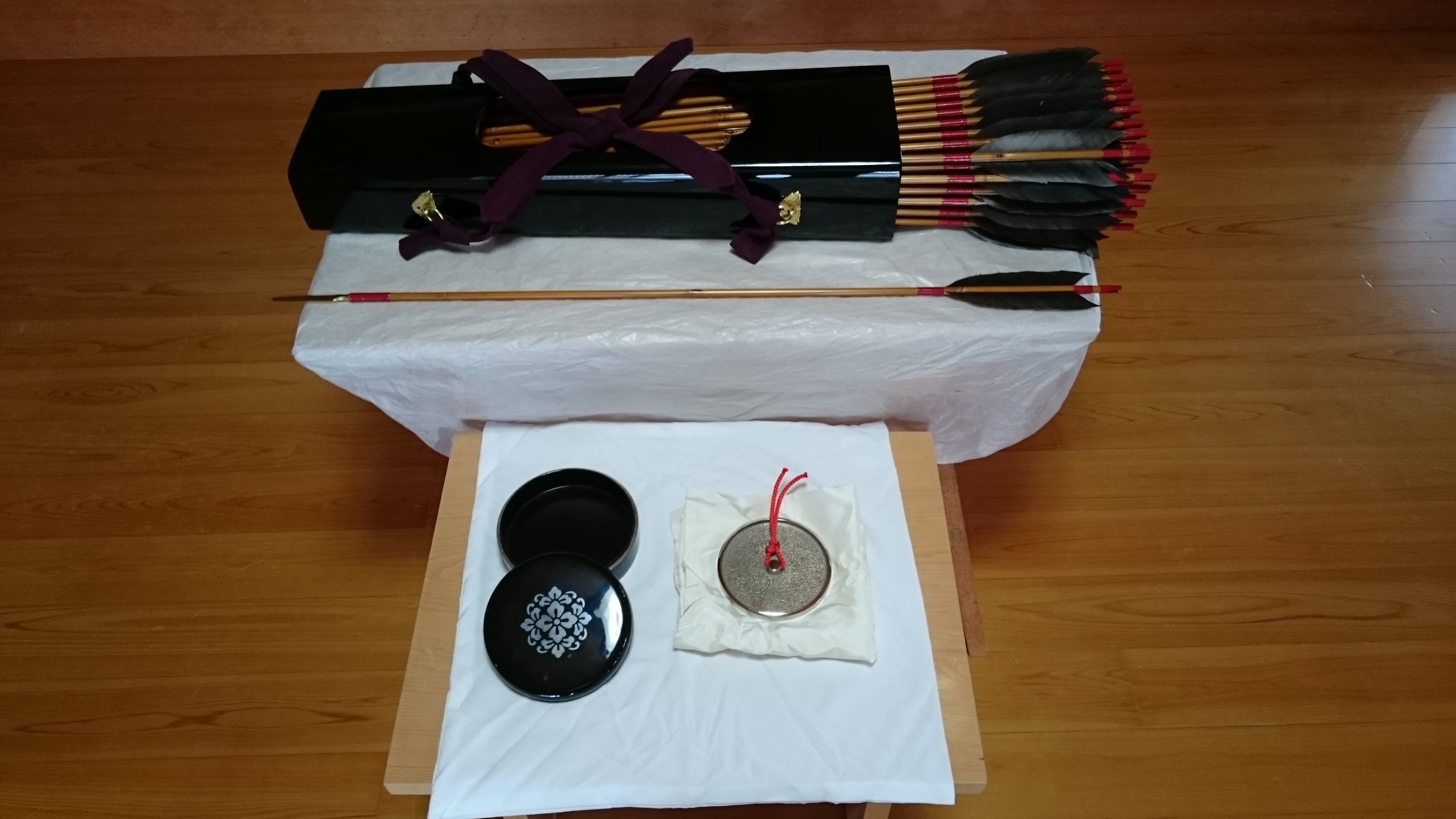 写真は、平成二十八年伊勢神宮から下された「革御靭」「御鏡」